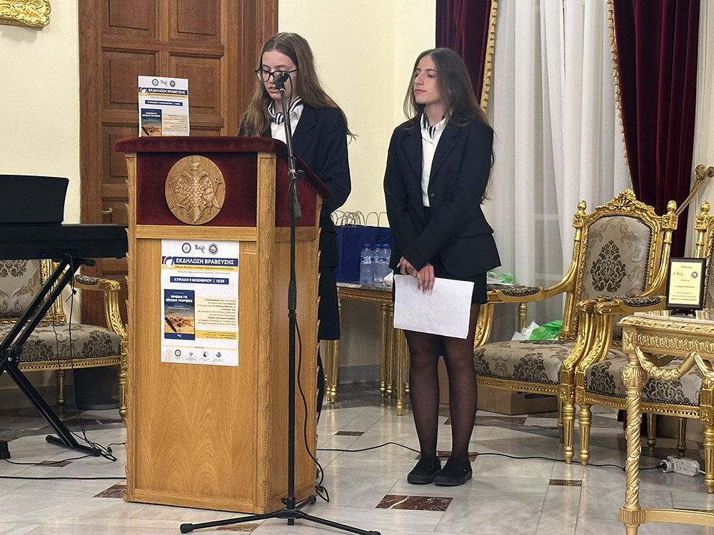 Τον λόγο στη συνέχεια έλαβαν μαθητές των Εκπαιδευτηρίων «Η Ελληνική Παιδεία» Ν. Ηρακλείου Αθηνών. Μέσα από την ιδιαίτερα ενδιαφέρουσα παρουσίασή τους για τον Αγώνα της ΕΟΚΑ, ανέδειξαν την ύψιστη σημασία της διατήρησης της ιστορικής μνήμης, ειδικά στη νέα γενιά, στόχος που αποτέλεσε και κεντρικό ζητούμενο του διαγωνισμού.
