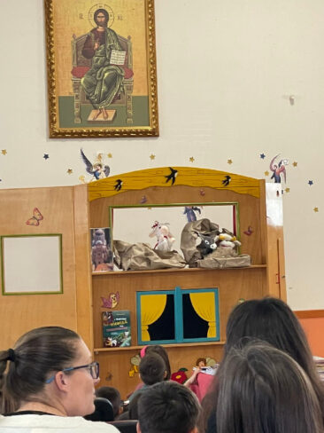 Οι μικροί μας φίλοι που πλημμύρισαν την αίθουσα παρακολούθησαν με έκδηλο ενδιαφέρον μια ξεχωριστή παράσταση κουκλοθέατρου με τις περιπέτειες της Ασπρούλας, της μικρής κατσικούλας του βιβλίου, που επιμελήθηκε η νηπιαγωγός κ. Παρασκευή Σακελλαρίου.