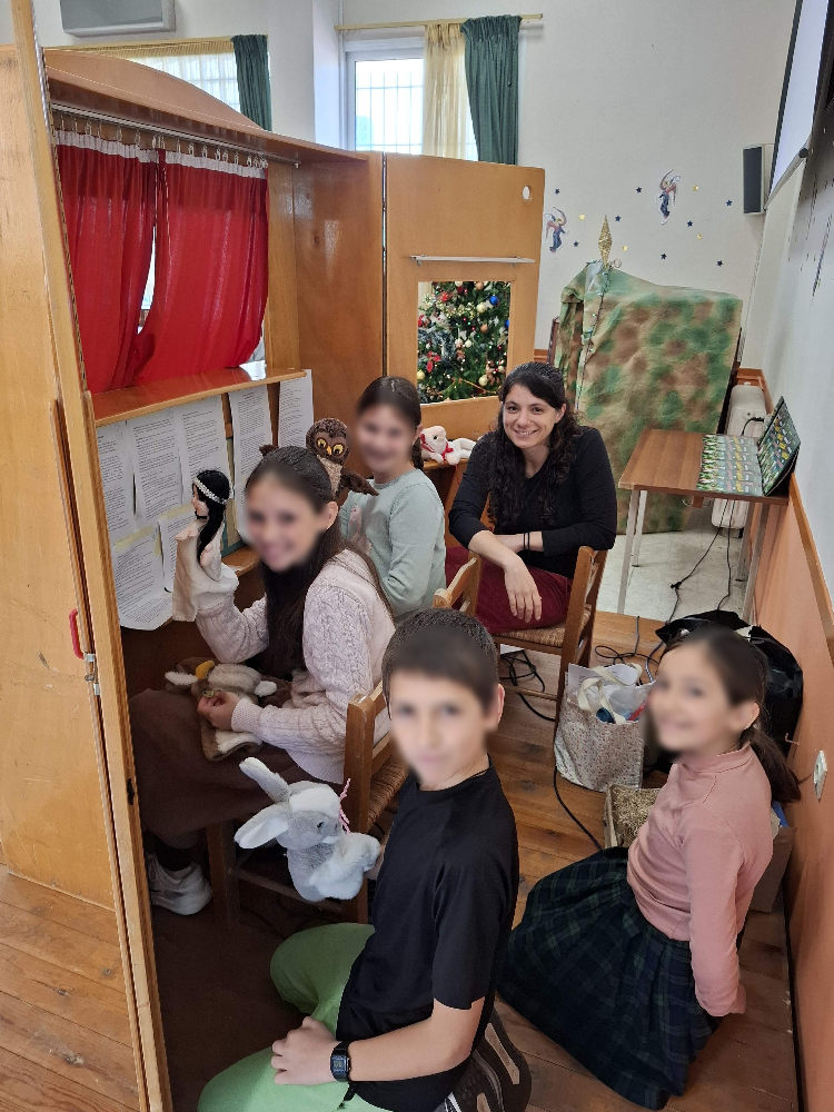 Οι μικροί μας φίλοι που πλημμύρισαν την αίθουσα παρακολούθησαν με έκδηλο ενδιαφέρον μια ξεχωριστή παράσταση κουκλοθέατρου με τις περιπέτειες της Ασπρούλας, της μικρής κατσικούλας του βιβλίου, που επιμελήθηκε η νηπιαγωγός κ. Παρασκευή Σακελλαρίου.