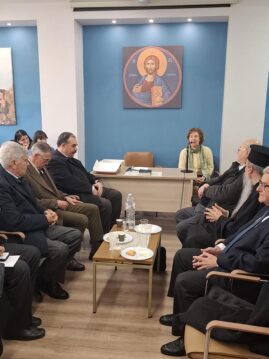 Ως επιστέγασμα του ζεστού, οικογενειακού κλίματος που επικρατούσε, ο Αρχιμανδρίτης π. Απόστολος Τσολάκης, θεολόγος-φιλόλογος-συγγραφέας και μέλος της Αδελφότητας Θεολόγων «Ο Σωτήρ», εξέφρασε τη χαρά του που βρίσκεται ανάμεσα σε αγαπημένα πρόσωπα των Εκδόσεων, χαρακτηρίζοντας τη συνάντηση αυτή ως «πρόγευση Παραδείσου», όπως ανέφερε χαρακτηριστικά. Στη συνέχεια, ενστάλαξε στην ψυχή μας πνευματικά μηνύματα με οδηγό και βοήθημα ένα ποίημα του αγίου Γρηγορίου του Θεολόγου, τη μνήμη του οποίου εορτάζαμε εκείνη τη μέρα, μιλώντας για την αγάπη του Θεού, που φανερώνεται σε όλη την κτίση γύρω μας.