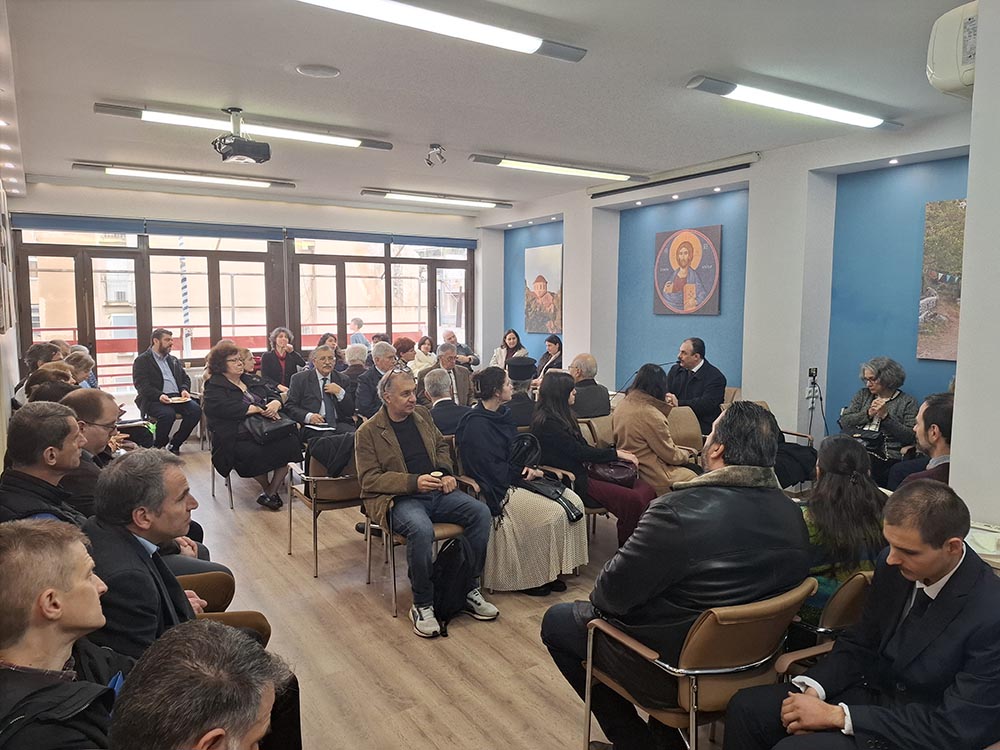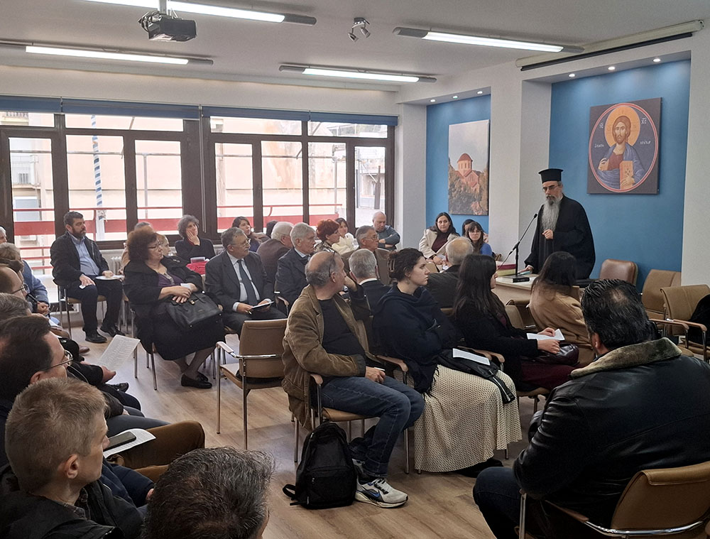 Ως επιστέγασμα του ζεστού, οικογενειακού κλίματος που επικρατούσε, ο Αρχιμανδρίτης π. Απόστολος Τσολάκης, θεολόγος-φιλόλογος-συγγραφέας και μέλος της Αδελφότητας Θεολόγων «Ο Σωτήρ», εξέφρασε τη χαρά του που βρίσκεται ανάμεσα σε αγαπημένα πρόσωπα των Εκδόσεων, χαρακτηρίζοντας τη συνάντηση αυτή ως «πρόγευση Παραδείσου», όπως ανέφερε χαρακτηριστικά. Στη συνέχεια, ενστάλαξε στην ψυχή μας πνευματικά μηνύματα με οδηγό και βοήθημα ένα ποίημα του αγίου Γρηγορίου του Θεολόγου, τη μνήμη του οποίου εορτάζαμε εκείνη τη μέρα, μιλώντας για την αγάπη του Θεού, που φανερώνεται σε όλη την κτίση γύρω μας.