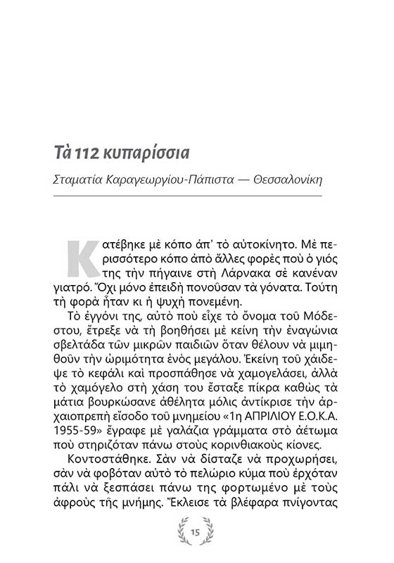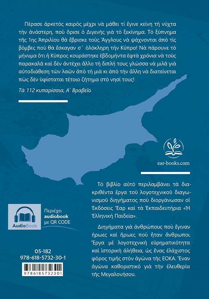 Διηγήματα για ανθρώπους που έγιναν ήρωες και ήρωες που ήταν άνθρωποι. Έργα με λογοτεχνική ευρηματικότητα και ιστορική αλήθεια, ως ένας ελάχιστος φόρος τιμής στον αγώνα της ΕΟΚΑ. Έναν αγώνα καθοριστικό για την ελευθερία της Μεγαλονήσου.