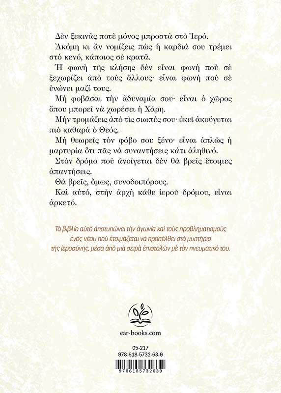 Το βιβλίο αυτό αποτυπώνει την αγωνία και τους προβληματισμούς ενός νέου που ετοιμάζεται να προσέλθει στο μυστήριο της ιεροσύνης, μέσα από μια σειρά επιστολών με τον πνευματικό του.